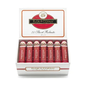 Flor de Copan’s Maya Collection Short Robusto Tubes – a mild, aromatic cigar with smooth burn and easy draw, perfect for both beginners and seasoned enthusiasts.